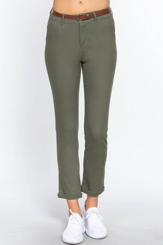 Cotton-span Twill Belted Long Pants
