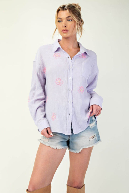 • Embo detailed cotton gauze button down shirt - Lola Diva's Boutique